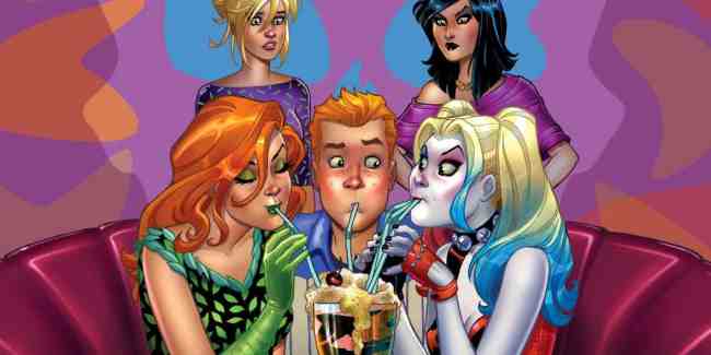 The upcoming crossover Harley & Ivy Meet Betty & Veronica caught my eye a while back, because it sounded like a delightful and wacky premise for all characters involved. It’s definitely by no means the weirdest Archie Comics crossover. However, the image above raised a few eyebrows: is there some kind of implied flirtation going on here between Harley and Ivy and a high school boy? (The Riverdale kids are all adults, so it’s hard sometimes to forget how young they’re supposed to be.) However, in a new interview co-writer Paul Dini appears to suggest that the four women are going to forge a kind of friendship, which is much more heartening. Hopefully. (via ScreenRant)