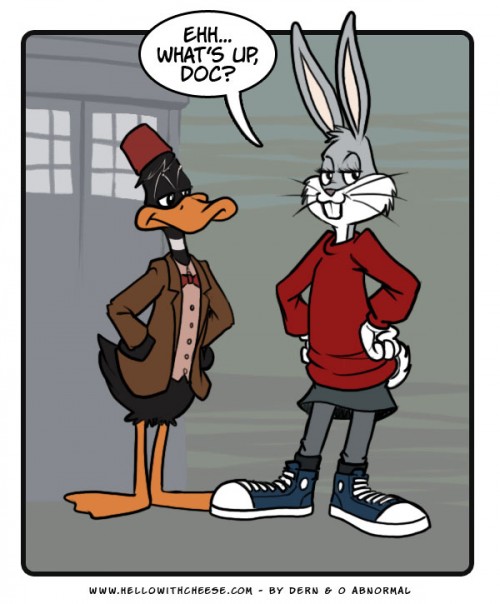 Daffy as the Doctor, Bugs as Amy Pond. Well, he was in drag on occasion. What a maroon! (by Hello With Cheese via The Uniblog)