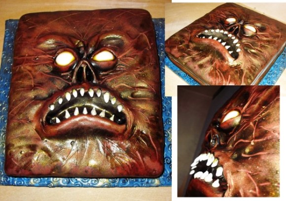 A reader of Geeks Are Sexy made this amazing Necronomicon cake. Guys — this is a cake. With cakey filling and not demonic spells!