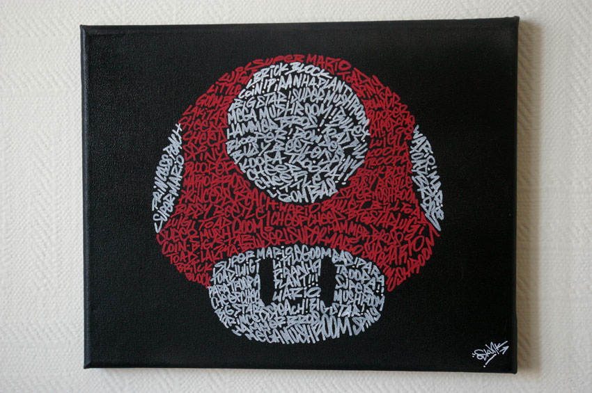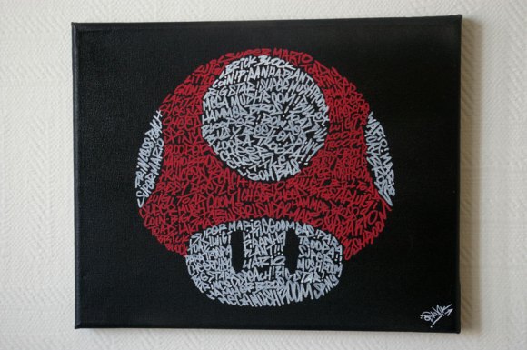 Hidden messages in mushrooms? I thought that’s what ‘shrooms were all about … Oh, no, this is different. This is typography art. But it’s still pretty groovy! A close-up follows the medium shot. (via Bit Rebels)