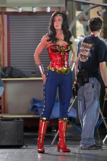 Hey, remember that time we got so psyched to see the Wonder Woman costume, then were kinda disappointed? But then we saw more pictures of it from a shoot and it was way better because it was less shiny and didn’t have impractical heels? Well, that moment is over. The costume has heels. So, so much for that. (It should be noted that this is, indeed, a stunt double and not Adrianne Palicki.) (At DC Women Kicking Ass)