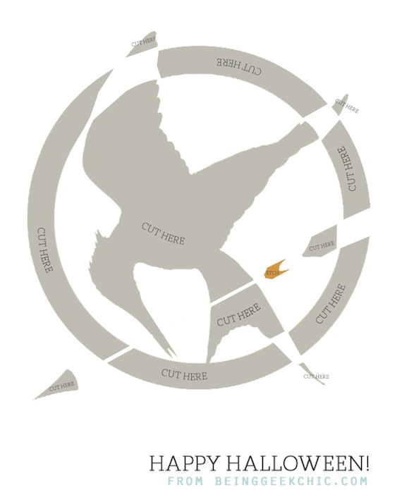 Being Geek Chic have kindly and magnanimously created this stencil for crafting an epic Mockingjay jack-o-lantern in the spirit of The Hunger Games and Halloween, and shared it with the world. You can download it in PDF suitable for printing here. (So Geek Chic)