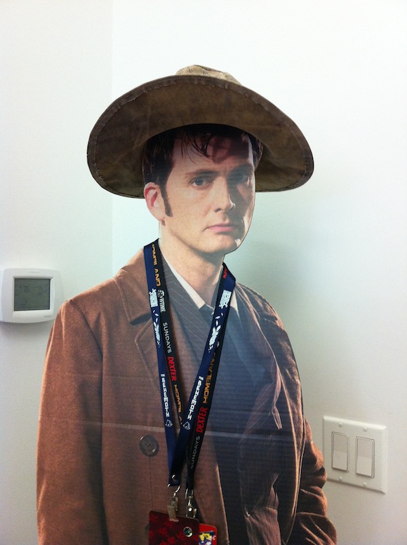 Today is David Tennant‘s birthday! We gave Cardboard David Tennant a hat that someone sent us, but he doesn’t seem too thrilled. I guess after 900, all the birthdays start to feel the same.