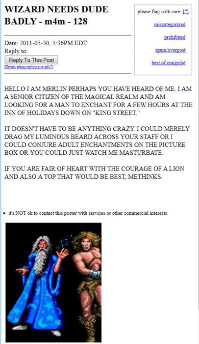 Merlin would like to add that any sorcery involving bodily chasms unaccustomed to “magical activity” are not necessarily out of the question. (At I Heart Chaos)