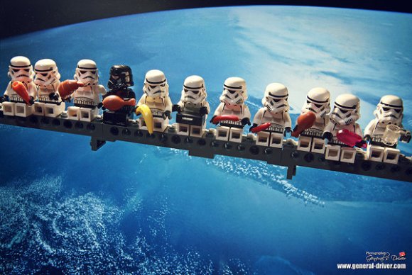 A Star Wars take on the famous “Lunch atop a Skyscraper” photograph by Charles C. Ebbets during construction of the RCA/GE Building in New York City with some adorable Lego Storm Troopers. (via That’s Nerdalicious!)