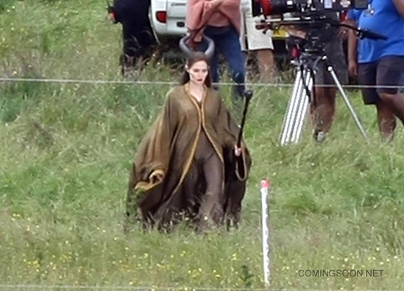 Check out these set photos featuring Angelina Jolie from Maleficent, Disney’s live-action rework of Sleeping Beauty from the perspective of the villainess. Are those actual horns on her head?! (via MTV Movies.)