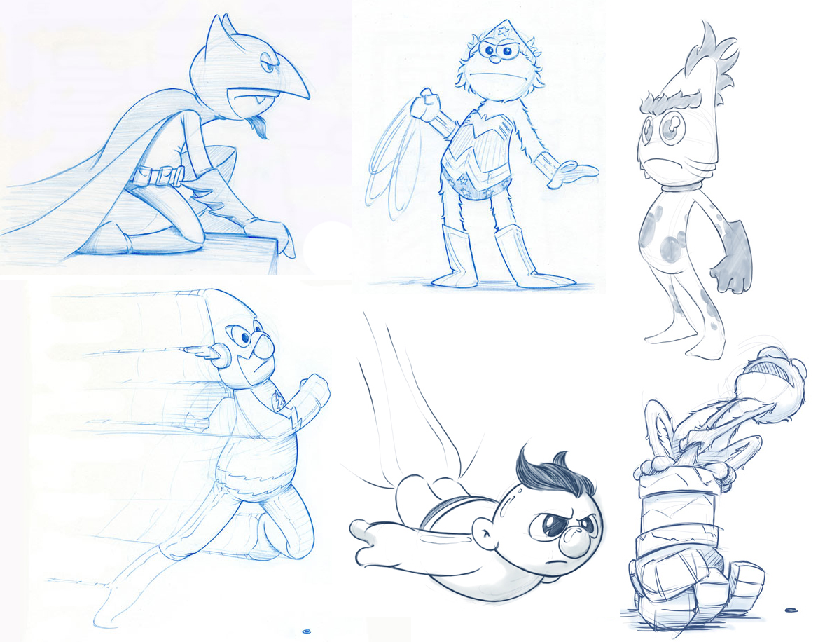 Evan Cheng draws in the style of Muppets and Sesame Street, and that means he gets to turn any character he wants into a Muppet or vice versa. Here are some Muppet-style superheroes. (At Tough Pigs)