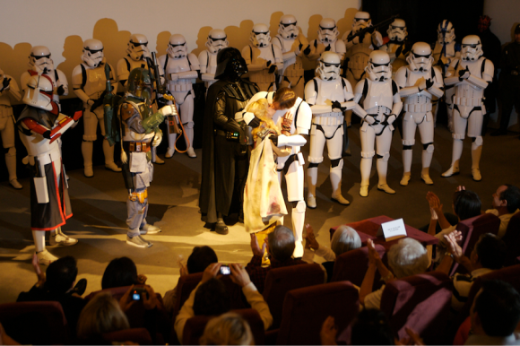This Star Wars wedding photo comes from Professional Geek Girl.