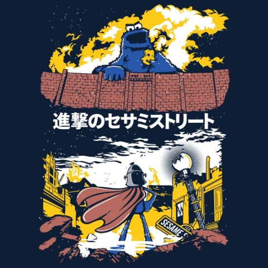 Attack on Titan/Sesame Street mashup art by Olipop, via Neatorama.