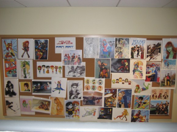 The production team of Young Justice keeps a bulletin board of fan art in its office: