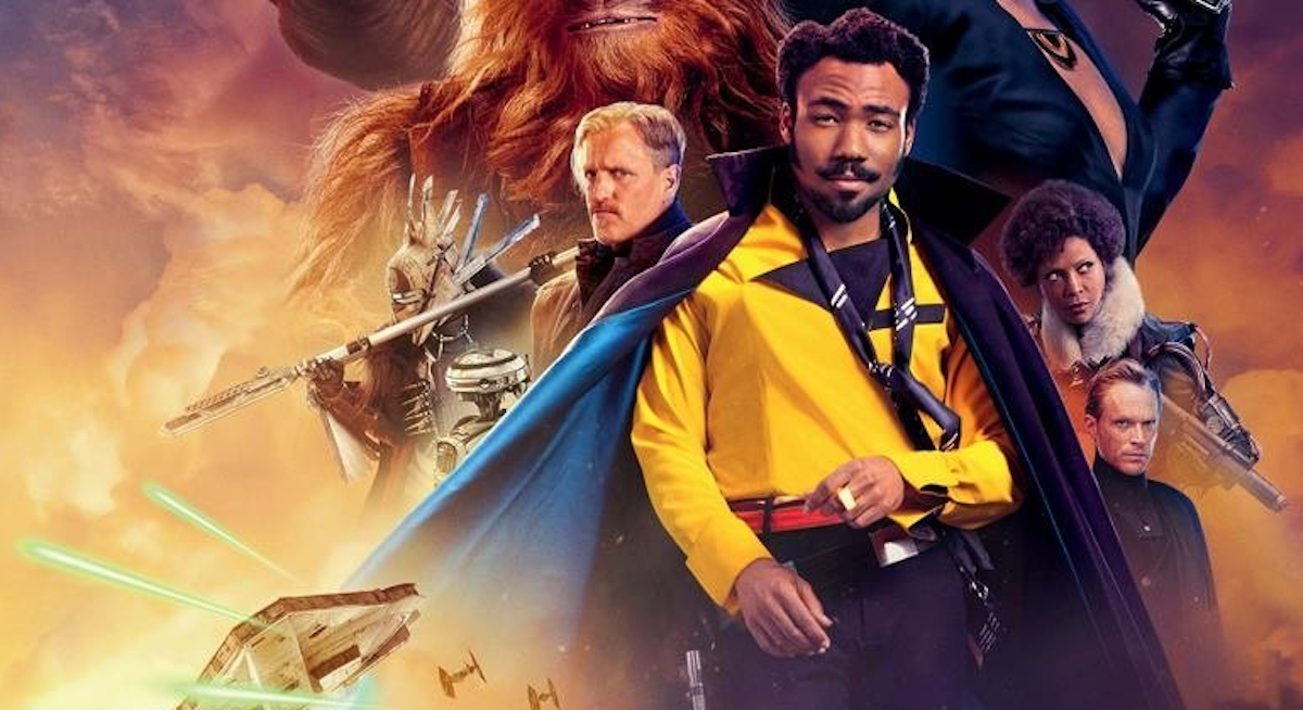 There’s a new promotional poster out in the U.K. for Solo, and I don’t hate it! It’s colorfully done, everyone pretty much looks like themselves—no airbrushing into oblivion—but, c’mon, your eye travels straight down from Ehrenreich’s careful Han coif to settle on the man in bold, blazing yellow. Yes, Donald Glover’s Lando Calrissian steals this poster just like we’re pretty sure he’s going to steal the whole damn movie.