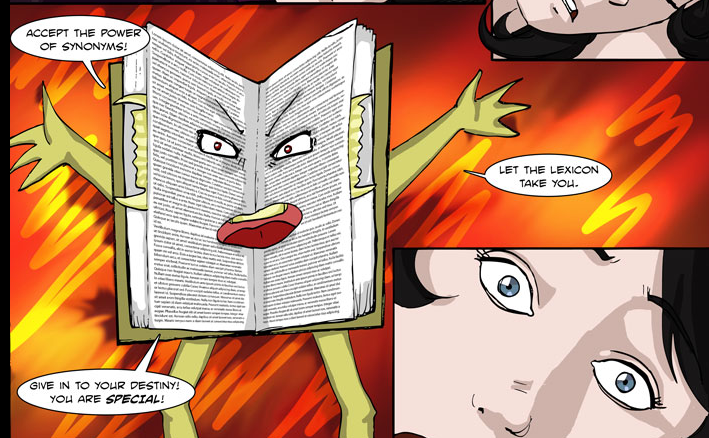 Dictionary Girl will not teach you syntax, but she will fight off inaccuracy with etymology! No dictionaries were harmed in the construction of this sentence. (By Stevie Schafer via I Heart Chaos)