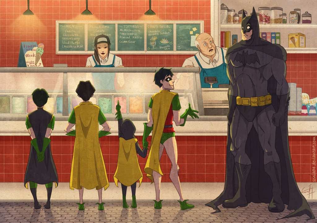 Bruce did not sign up for this. By DeviantARTist Sonia04.