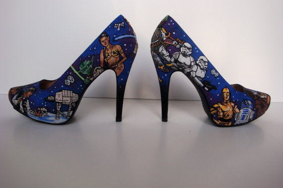 Finally, the hottest Star Wars heels you will see all day, made to order on Etsy for $85. Do it. (via Fashionably Geek)