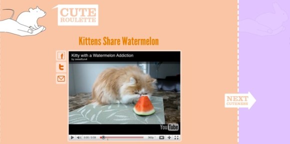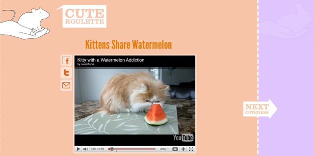 From the folks at Hard Candy Shell comes Cute Roulette, which is just like Chat Roulette, except without the interactivity with others, and random videos of adorable animals instead of surprise genitals. So, it’s actually nothing like Chat Roulette. That’s probably a good reason to visit. (via The Laughing Squid)