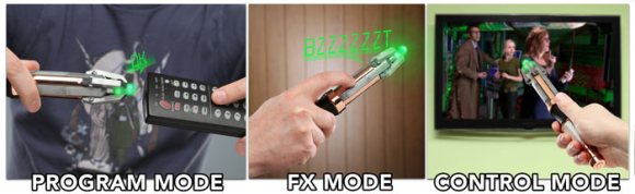 This Mark VII Sonic Screwdriver is specially created for Earth use. It’s been simplified so as not to cause danger to human operators, while still being an extremely powerful tool in the wrangling of entertainment electronics. Using simple and intuitive movements you will be able to use the Sonic Screwdriver to control your devices just like The Doctor. Rotate clockwise or counterclockwise to adjust the volume on your iPod dock; flick the Sonic Screwdriver up and down to change TV channels or navigate the program guide; and even open your DVD tray by pulling back on the Sonic Screwdriver. With 13 gestures and 3 memory banks, you can store up to 39 remote control codes on the Sonic Screwdriver: plenty to control all of your Earth-based entertainment equipment. In Control Mode, each gesture triggers a classic Sonic Screwdriver sound effect and the tip illuminates with a bright green light. (There’s also a Quiet Mode if you’re stealthy.) And because The Doctor doesn’t let just anyone use his stuff, there’s a Lock Code that allows you to ensure that it’s yours… ALL YOURS.