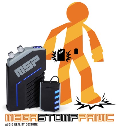 With a traditional costume, you take the way you look regularly and cover it up with clothing, masks, and makeup. The Mega Stomp Panic creates a costume using SOUND only. The sounds from the Mega Stomp are synchronized to your steps and stomps, giving the illusion that you are generating them yourself. See it in action!