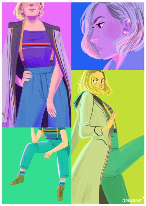 Thanks to these excellently imaginative creators, the Thirteenth Doctor is already alive and kicking (and running!)—and, apparently, cutting a fashionably quirky swath across the universe. I appreciate their hard work and permission to feature their art here, and I can’t wait to see where they take us next.