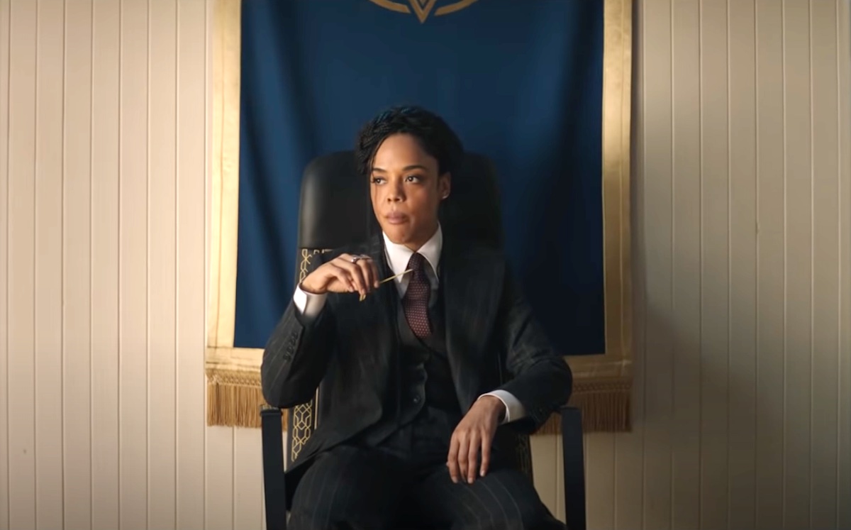 Then we get a shot of Valkyrie in what looks like some sort of diplomatic meeting, looking bored as hell. Why are you in a suit and tie, Valkyrie? Who did this to you?? Blink twice if you need us to come get you out of there. (To be clear, our King Valkyrie looks incredible in this get-up, but it also seems like she wants to be anywhere else. Luckily, we know there’s also a new fighting suit in her future.)