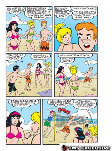 When Archie and Reggie get into a heated volleyball match with two rivals from Pembrooke High, Betty and Veronica are not happy waiting on the sidelines for their dates to finish up—and they’re especially not happy to watch them lose so miserably! When they offer some solid advice on how to win the game, they guys don’t want to listen—so it’s up to the girls to reclaim Riverdale’s title in “Volley Dollies,” the new lead story to this fun comics double digest!