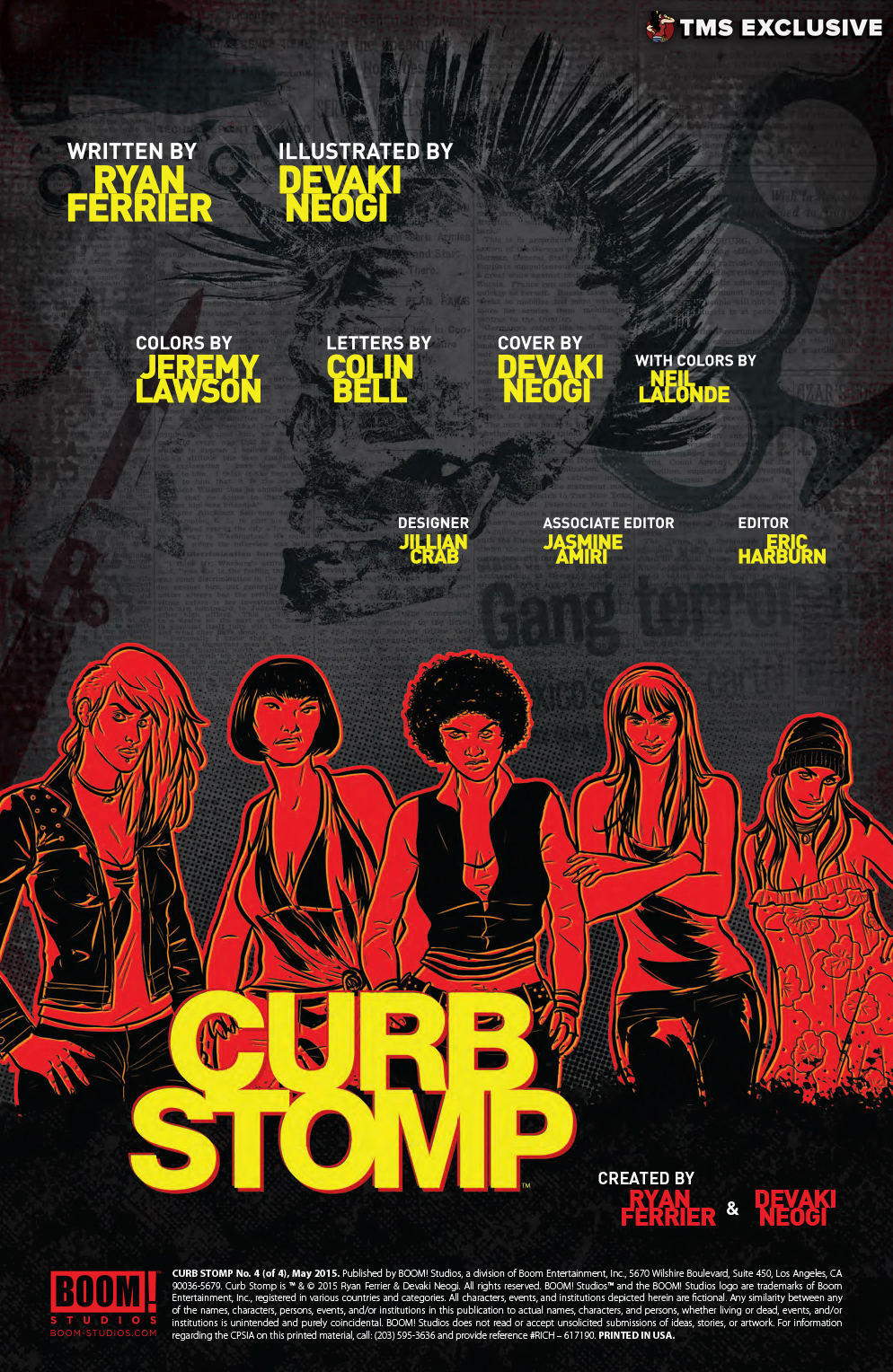 Curb Stomp, BOOM! Studios’ wonderfully feminist and diverse limited series by the super-talented Ryan Ferrier and drawn by the awesome Devaki Neogi, is coming to an end next week. The Mary Sue got an exclusive preview which you can check out below!