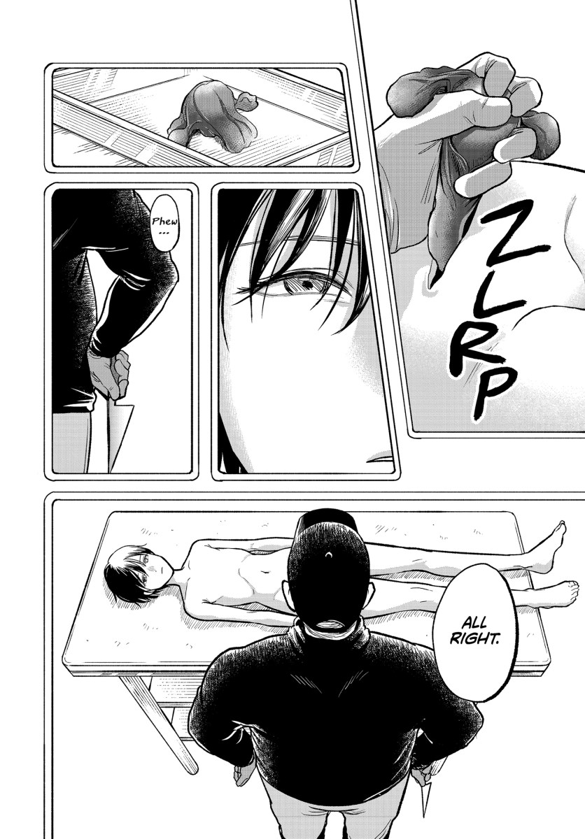 As the story progresses, it’s obvious that Chiaki can’t stop the way he truly feels. In one of the manga’s most powerful scenes, we see Chiaki dreaming of his father butchering his body like the animals that are hunted. His father removes the parts of Chiaki’s body that he hates, and once the process is over, Chiaki smiles and says that he can now go hunting with his father.