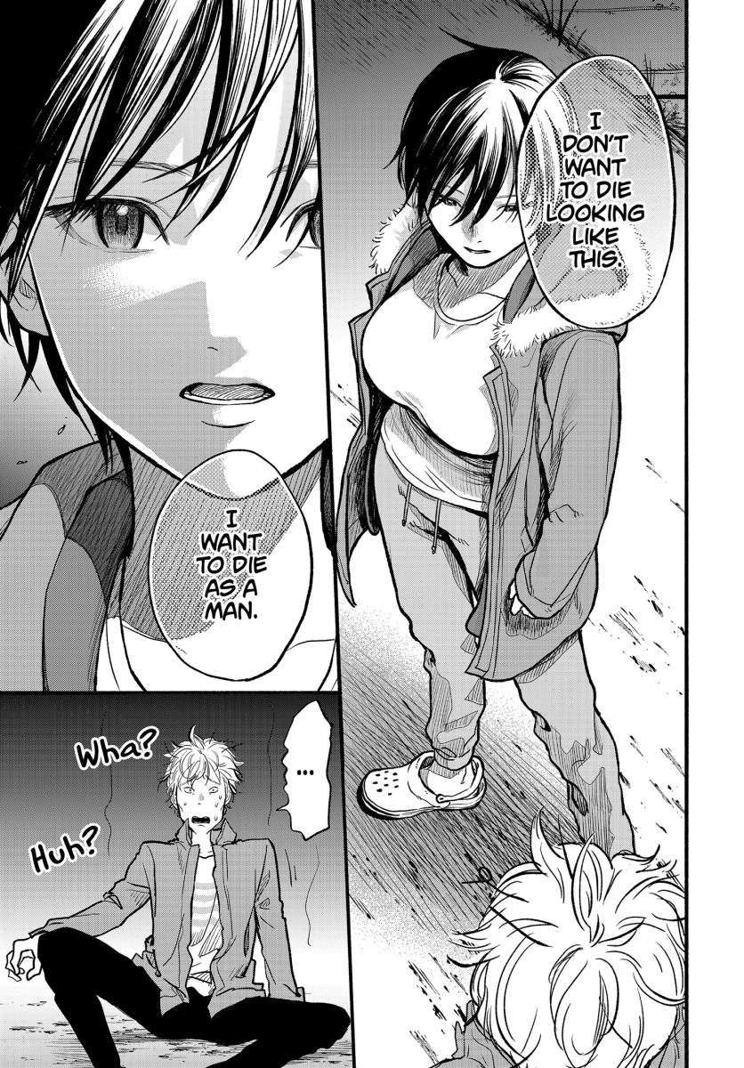 I always want more people to read stories like this. I’m not trans, but it’s easy to see how hard it is for Chiaki to live his life the way he’s been living it. It’s also easy to see why Chiaki is struggling to take that last step—even if he wants to AND has a doctor telling him that he should. Wanting to keep your parents happy is something that’s relatable, and a lot of kids (especially queer kids) decide that it’d be best to prolong their own happiness if it’ll keep their parents happy. Motigi points this out in the interview. “The scene that hit me the hardest was the one where Chiaki gets hit by that stray shot and his dad is crying, ‘I put a wound on a little girl’s body,’ and Chiaki is thinking, I quit saying I was a boy,” says Motigi. “His dad’s apology is heartfelt, but it’s because it’s heartfelt that it’s so weighty – it’s the kind of comment that can shake you to your core. Only someone who has been hurt by heartfelt love could write this scene.”