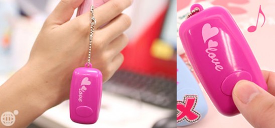 Do you share an apartment with a roommate, and the toilet in the bathroom is placed as close to the bathroom door as possible? Do you always end up taking a bathroom break the same time as a coworker and sit in the stall next to said coworker, wondering how in the world Jerry makes utterly no noise until the final toilet flush when you can’t help but announce the reason for your bathroom trip with particular noises the very second you sit on the bowl? Never fear, self-conscious friend, the Japan Trend Shop is here to help you hide your audible, bathroom-related shame. The Eco-Otome Toilet Sound Blocker is a little device that can fit onto a keychain or mobile phone, and with two pushes of a button, makes toilet flushing noises for 25 seconds in order to cover up the noise of distinctive splashes. Another two pushes of the button before the 25 seconds is up will prematurely end the flushing noises.
