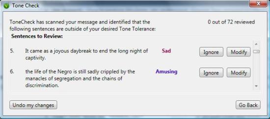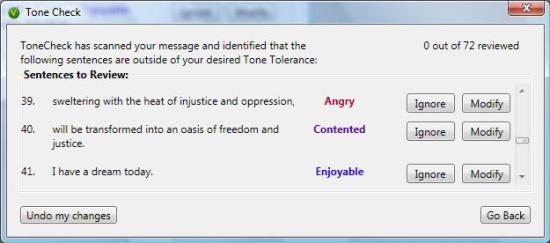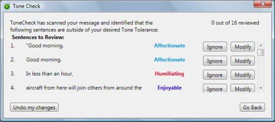 Do you ever have that feeling where you’re staring at an e-mail, mouse over the send button, unsure that this really conveys the message you want to send. Maybe your phrasing is a bit off. You wouldn’t want someone to get the wrong idea, after all. You don’t want a giant conflict to arise that was all the result of a simple misunderstanding. If only there were some sort of program that could check to make sure the tone of your e-mail is appropriate.