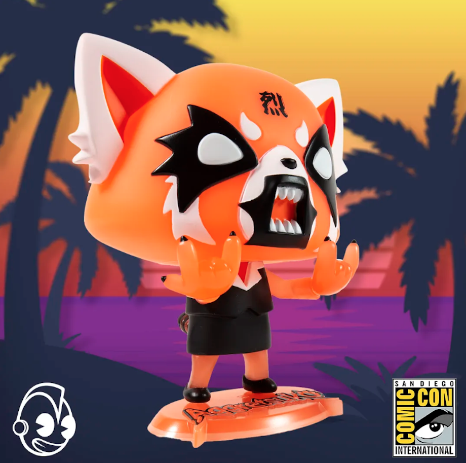 This red glow-in-the-dark vinyl figure from Netflix’s Aggretsuko perfectly captures the rage of a red panda at a mind-numbing office job. Blast some death metal and grab this at booth #2486.