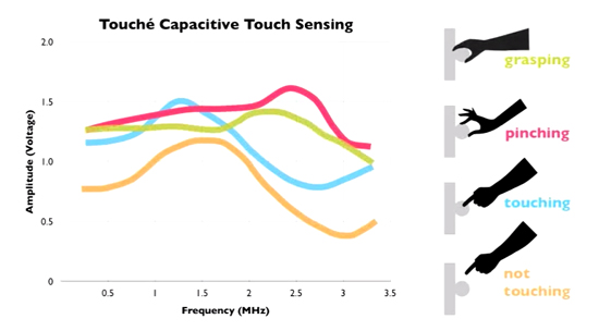Or in this case, multiple frequencies. Touché, from Disney Research in Pittsburgh, Pennsylvania, is a project that explores what they’re calling “a novel Swept Frequency Capacitive Sensing technique” that would allow objects to sense multiple different touch gestures. By objects, they mean humans, liquids, sofas and just about anything else you can touch. Hello, Minority Report.