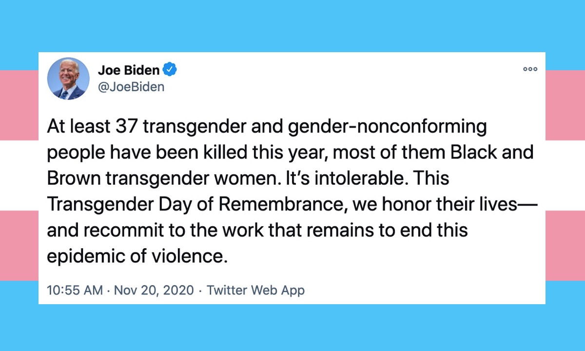 Statement by President-elect Biden on Transgender Day of Remembrance: https://t.co/CghbBwRtq5 pic.twitter.com/P4Q1DVJfxp