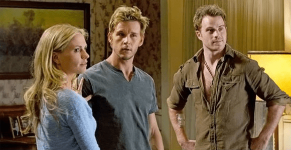 He moves on to Sookie’s house, where he’s late for a very special dinner. Sookie, suspecting his vampiric ways, added colloidal silver to their meal and gets all dolled up so Ben will be too distracted to notice. He eats the entire dish but it seems to have no affect. Once things move to the couch, a make out session ensues, Sookie gets partially unclothed, only to tell him that’s enough, turn her faery powers on him, and call him Warlow. That was weird.