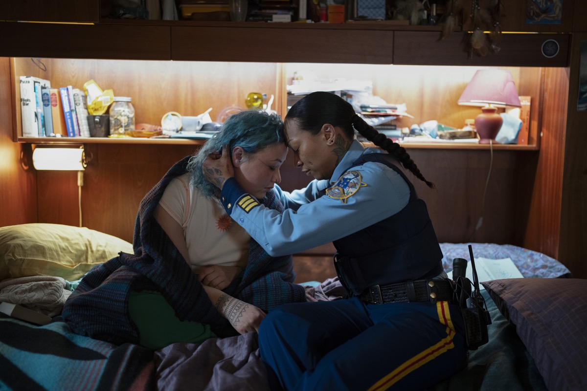 The steely Danvers isn’t the only officer on the case: State trooper Evangeline Navarro (boxer Kali Reis, proving herself an equally skilled actor) can’t shake the murder of Annie K., a local Iñupiaq woman who was stabbed to death and whose tongue was removed. Annie K.’s unsolved murder torments Navarro, whose tenacity and emotional investment in the case earned her a dishonorable transfer to the trooper division. The interplay between Navarro and Danvers—a local woman of color and an older white woman transferred in from the outside—is the focal point of Night Country and a conduit for the existential turmoil in Ennis, a remote mining town that only seems to know hard living.