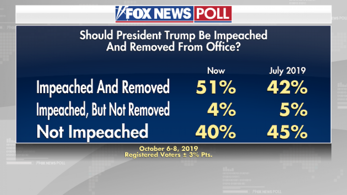 Just because Fox News conducted the poll, that doesn’t mean they only surveyed Fox viewers. If they had, the poll would look very different, as there’s still a huge schism in responses down party lines. Only 12% of people who voted for Trump say they support impeachment right now. (Which is actually pretty surprisingly high.)