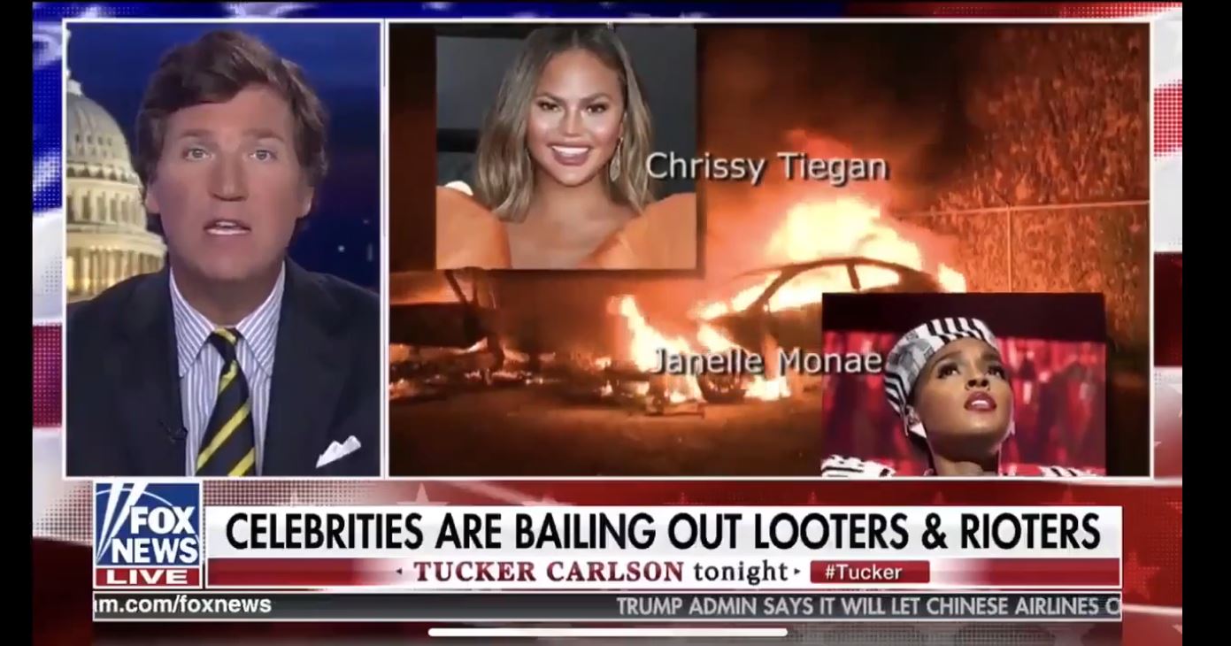 Human pocket square Tucker Carlson delivered a monologue on his Fox News show, where he called out celebrities for donating to bail funds for Black Lives Matter protesters. Carlson’s “exposé” included a scrolling list of celebs like Chrissy Teigen, Janelle Monae, Steve Carell, Patton Oswalt, Harry Styles, Seth Rogen, Don Cheadle, and many more, who Carlson accused of freeing “looters and rioters.”