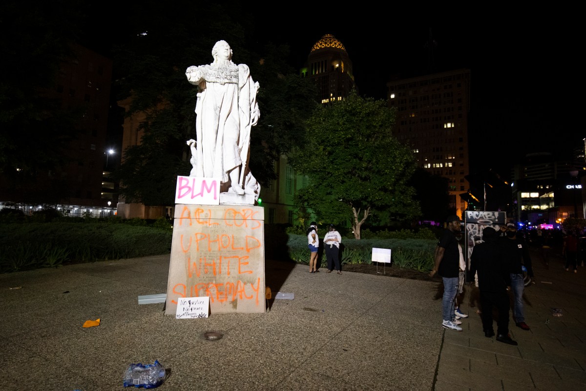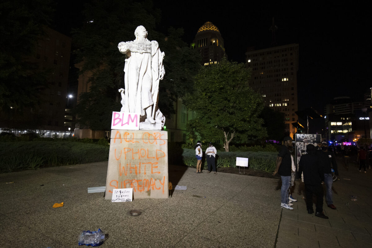 In the wake of the senseless murder of George Floyd (and countless others), thousands of people across America are taking to the streets in protest. These protests, which are happening in several cities, are the result of the rampant and unchecked police brutality that terrorizes people of color. One such riot took place in Louisville, KY, where protesters vandalized a statue of the city’s namesake, France’s King Louis XVI.