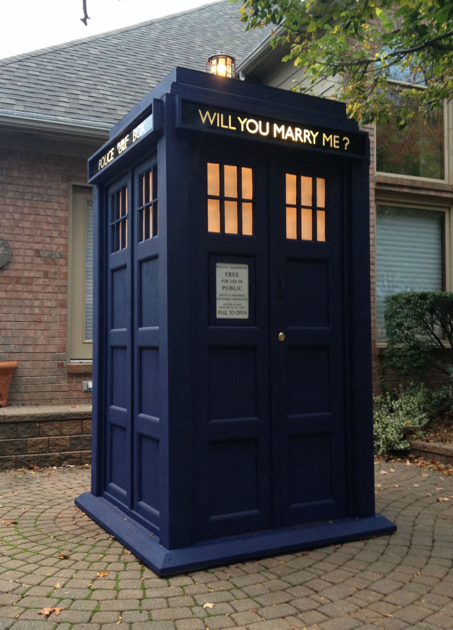 That’s some ring box! Redditor Muffinman5423 built this TARDIS just to propose to his girlfriend. And you can watch a video of how it went down right here. (via Geekologie)