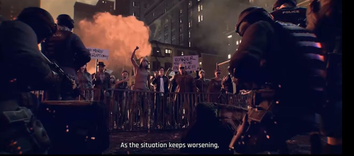 How did nobody go "hey, maybe it's a bad idea to release a game in which you lead a government-approved extrajudicial death squad to kill a conspiracy linking BLM-esque imagery with illuminati terrorism"? https://t.co/GEXPbcHTsf