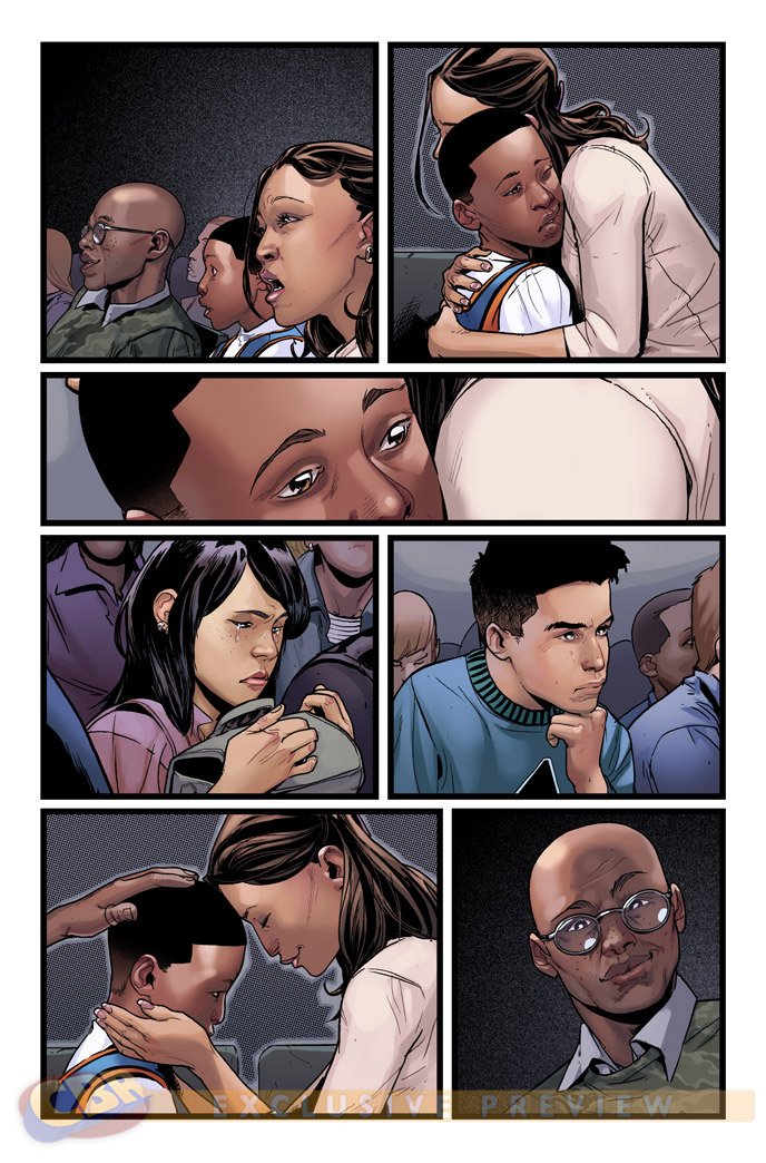 Now that we’ve been officially introduced to Miles Morales, Bleeding Cool has seen the first few pages of #1 and is wondering if there is an anti-union agenda featured in his story aimed towards the educational system. Apparently, writer Brian Michael Bendis was inspired by the documentary Waiting for Superman, which centered around at-risk kids and their journeys through public and private education. A big part of that was the lottery process to get into charter schools. I direct your eyes towards this panel, showing a young Miles with his parents at one of these lotteries: