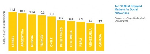 The report, released yesterday, takes a look at social networking during the month of October of this year, and finds that the United States doesn’t even crack the top ten most engaged social networking markets. That isn’t to say that the U.S. doesn’t have more people using a social network than other markets, but it does account for amount of time spent social networking.