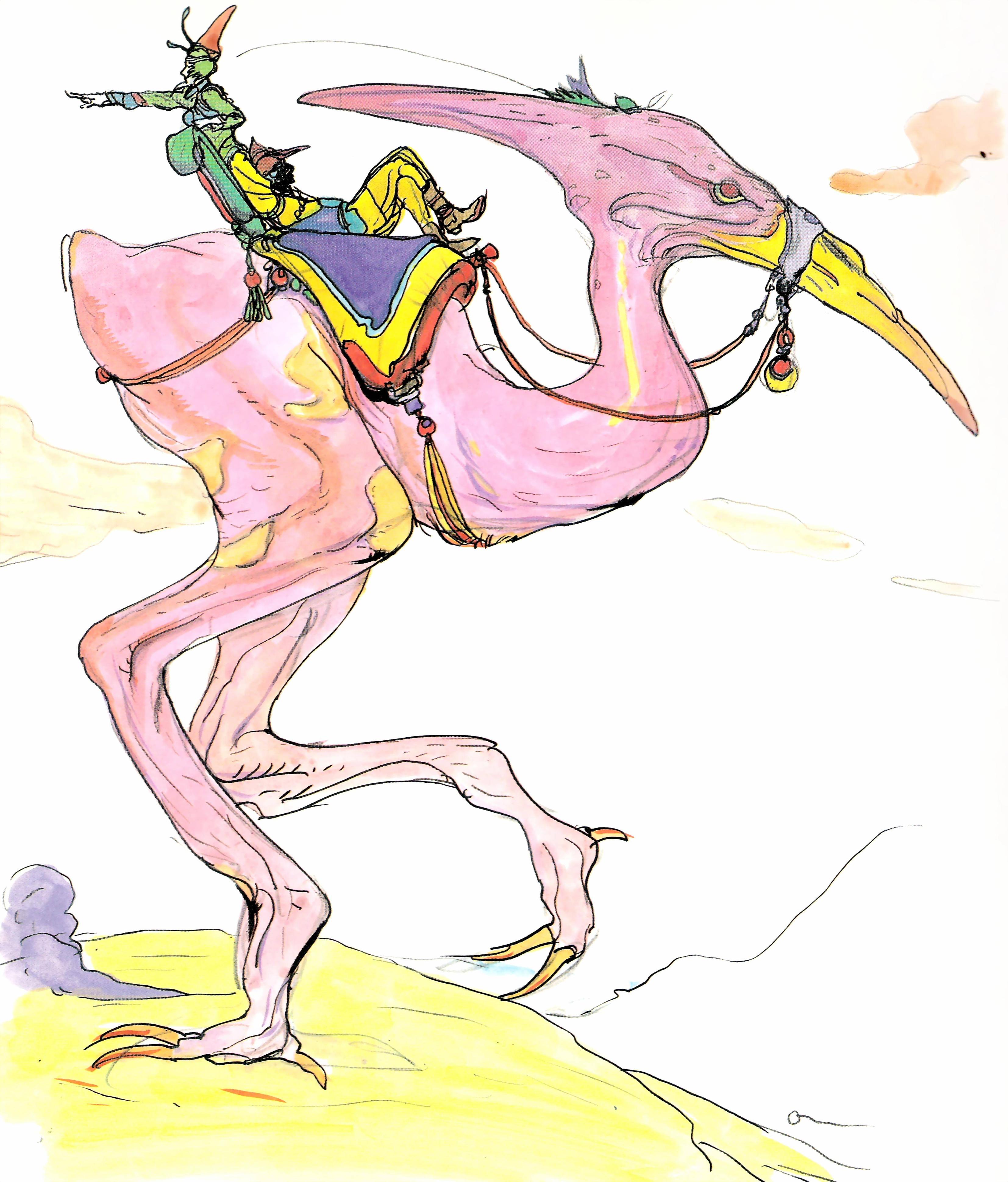 That, my friends, is a Chocobo as drawn by Final Fantasy designer Yoshitaka Amano. For real. I will never complain about how ridiculous the fluffy yellow versions look ever again. Thanks for the nightmares, Dorkly!