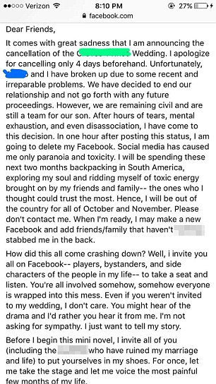 Things We Saw Today: Viral Facebook Post About a Canceled Wedding Is the Best Thing I’ve Ever Read