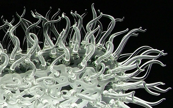 That, right there, is smallpox. At least, that is what it would look like if magnified a million times and rendered in blown glass. Pretty, isn’t it? In a “wow-if-that-was-real-that-would-obliterate-an-entire-country” kind of way. Glass blower Luke Jerram is responsible for this work of deadly beauty, and was inspired by magnified visualizations of viruses and wanted to try his hand in his chosen medium. He received assistance from virologists in making these, who must have been tickled at how pretty disease can look when shiny.