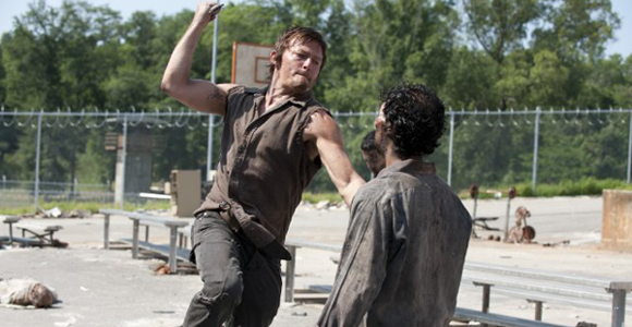As if that wasn’t bad enough, T-Dog gets bit to shreds by a walker in the midst of the attack and considering he knows his fate, gives Carol a chance to escape by storming towards a few zombies blocking their path. A moment of silence for T-Dog, please. So, how did this all start? Remember that prisoner Rick left for dead? He managed to survive and planned this whole thing to take back the prison. He fails miserably when prisoner Oscar shoots him in the head to save Rick. Guess they’ve got their new token black guy now. Seriously, that’s all I could think during that scene and that sucks.