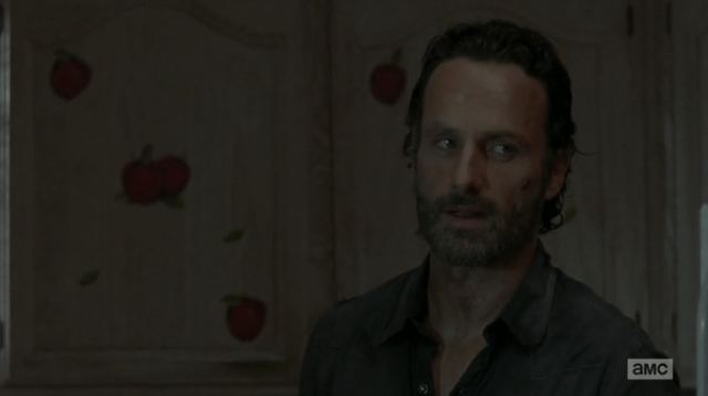 Also, Rick is packing knives in the trunk or whatever. Jesus christ, every time they cut to Rick in the middle of what should be Melissa McBride’s goddamn Emmy moment over here, another kitten dies or something.