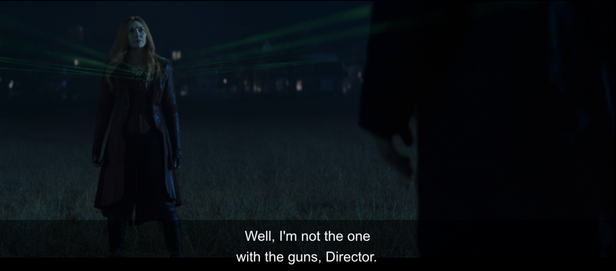 On the flip side, Wanda bursting into a S.W.O.R.D. facility and then capturing an entire town because she’s going through something doesn’t make her innocent, either. Director Tyler Hayward labels Wanda as a “terrorist” and isn’t listening to Monica when she tells him that this isn’t a pre-mediated attack, and it shows that no one really knows what to do in this situation—not Hayward, not Monica, and certainly not Wanda.