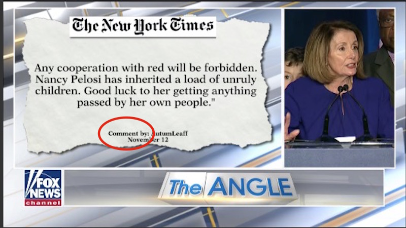 How hard is she struggling to do that? Well, she’s using quotes from “The New York Times Online,” which turn out to be from the Times’ comments section. (Seriously.)