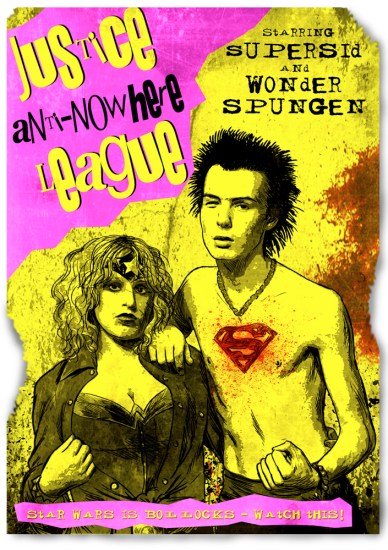 This most recent challenge was to imagine what it would look like if the manager of the Sex Pistols got the rights to the Justice League in 1977 and made a movie of them. We bet you can already guess whether the entries fit our criteria.
