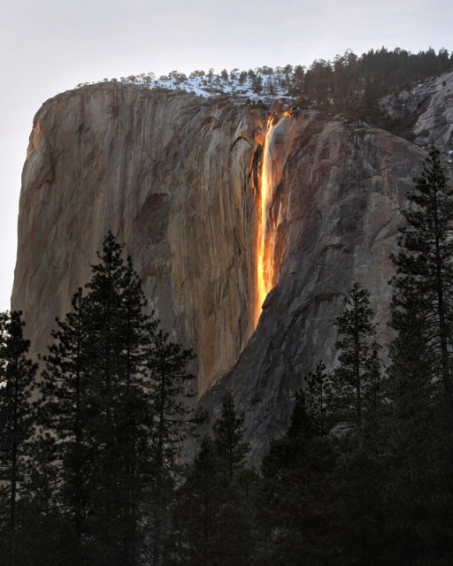 Even though Horsetail Falls can only be seen in the late winter and early spring, it makes up for its seasonality with a stunning, unusual visual effect: in February, at sundown, when the sky is clear, it takes on a golden, lavalike glow that makes it look almost like an erupting volcano. Naturally, it’s a destination for photographers; we can only hope Sauron and/or Shadow Man haven’t discovered it yet.